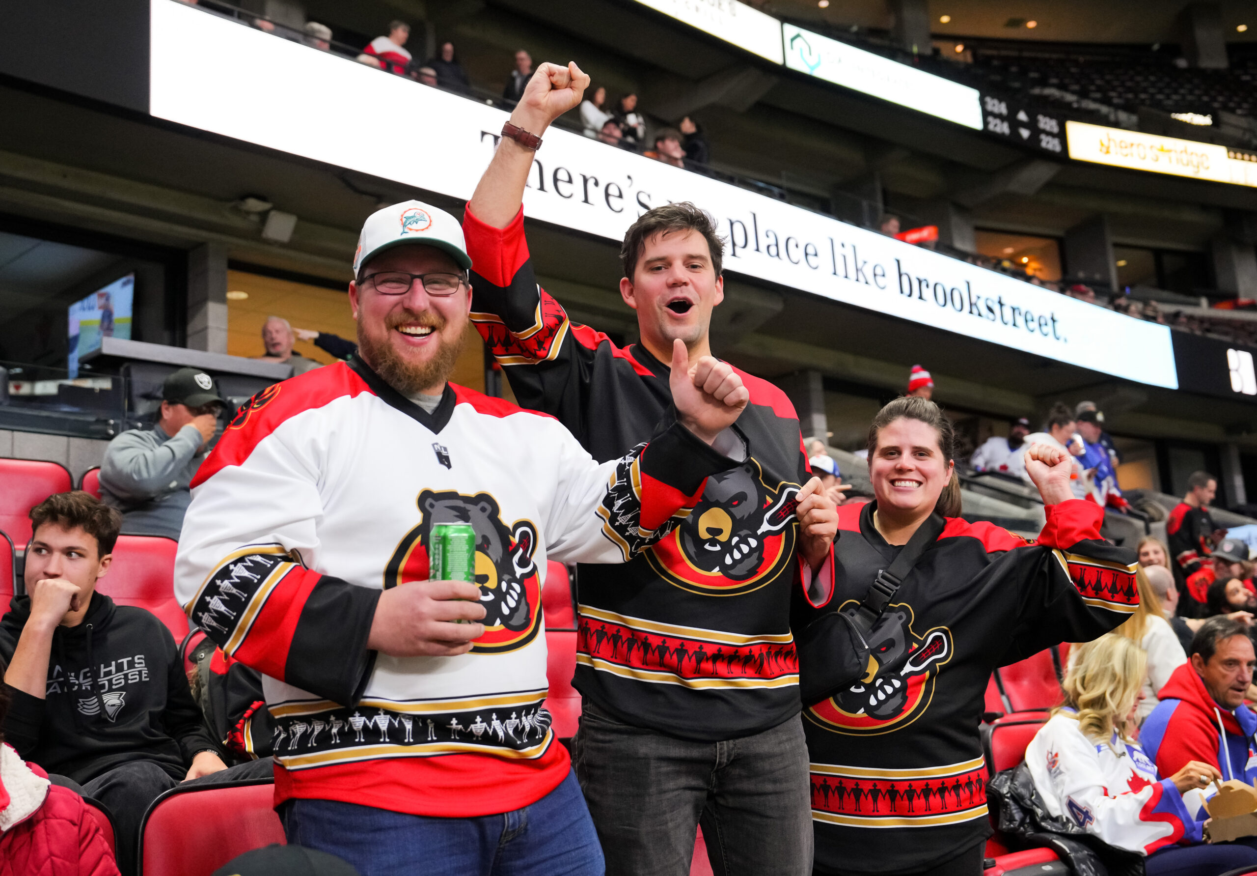 Friday’s inaugural game saw Canadian Tire Centre packed with 7,000 fans there to support the team. Donning their Black Bears jerseys and raising their claws high, the energy in the building no doubt helped propel the team to their win.